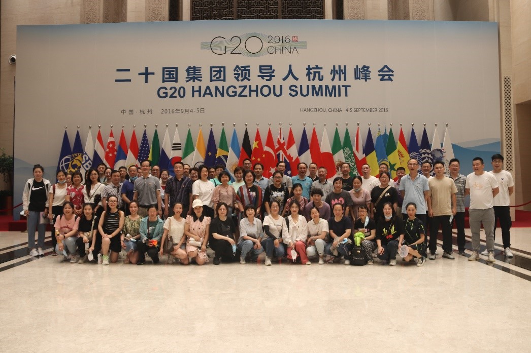 在杭州G20峰會會場,公司黨員、骨干實地參觀了2016年杭州G20峰會主會場等場館,認真聆聽了場館講解員對G20峰會會場各種設施的介紹。這座在杭州國際博覽中心設計與改造完成的G20峰會會場,體現(xiàn)出“恢弘氣勢和雅正平和”的特點,我們能工巧匠秉承“大國風范、江南特色、杭州元素”的總體思路,將絲綢、紗燈、木雕等頗具中國特色的江南元素融入到了設計之中,充分體現(xiàn)了「禮、合、仁」的三個主題。